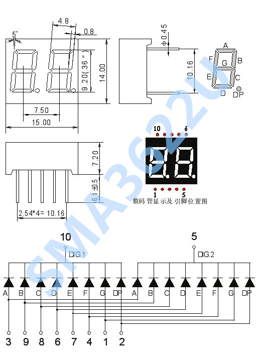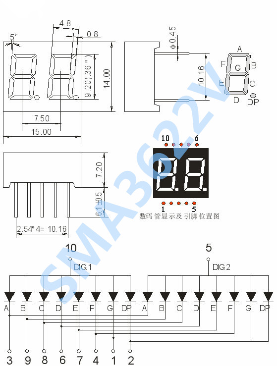 led数码管常用段数一般为7段有的另加一个小数点,还有一种 是类似于3位“+1”型。位数有半位,1,2,3,4,5,6,8, 10位等等....,根据LED的接法不同分为共阴和共阳两类,了 解LED的这些特性,对编程是很重要的,因为不同类型的数码 管,除了它们的硬件电路有差异外,编程方法也是不同的。共 阴和共阳极数码管的内部电路,它们的发光原理是一样的,只 是它们的电源极性不同而已。颜色有红,绿,蓝,黄等几种。 led数码管广泛用于仪表,时钟,车站,家电等场合。选用时要 注意产品尺寸颜色,功耗,亮度,波长等。 |